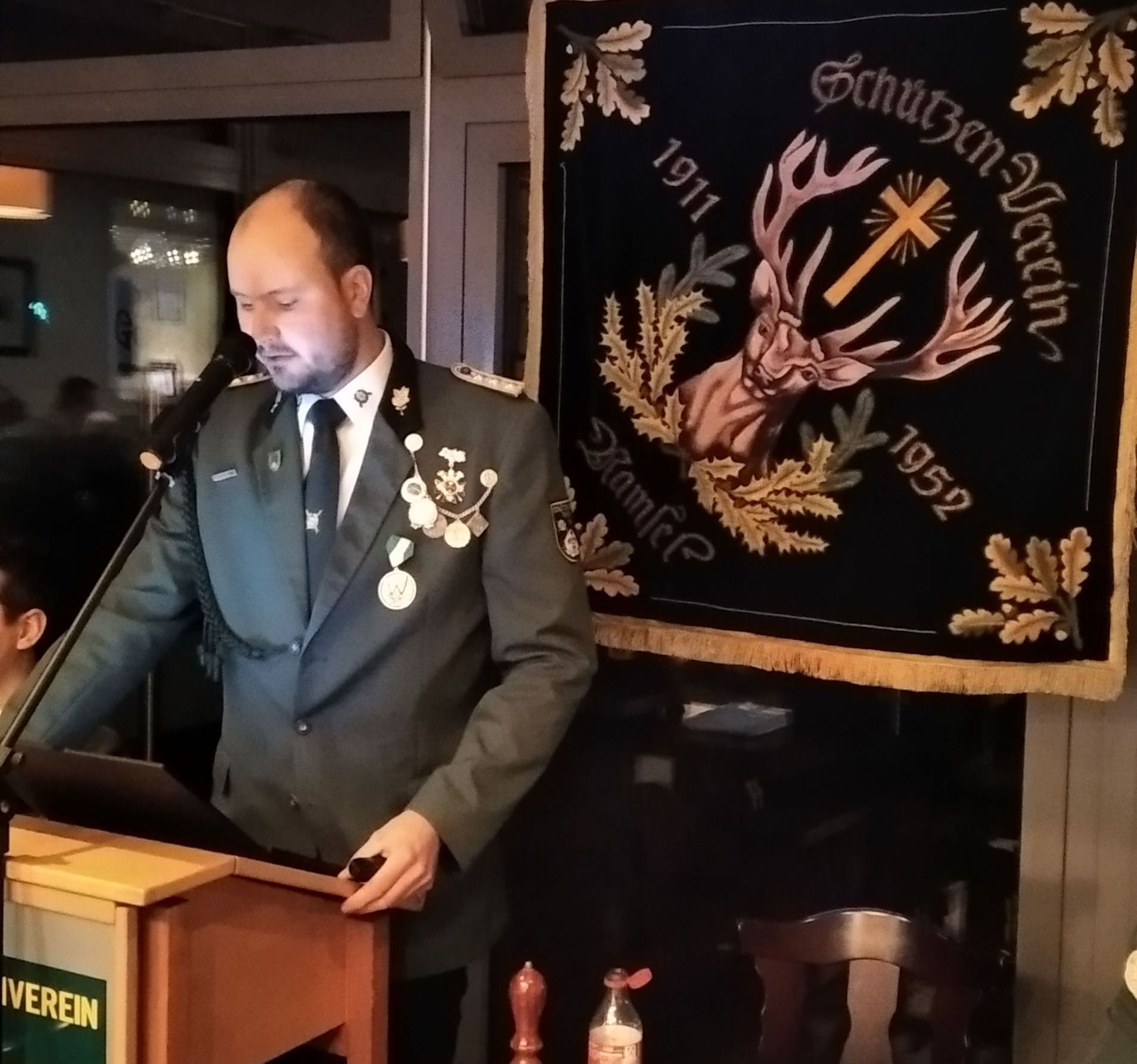 Nach seiner Begrüßung verlas er die Namen der im zurückliegenden Jahr verstorbenen Schützenbrüder. Hier zu erhoben sich alle Anwesenden zu einer Gedenkminute.